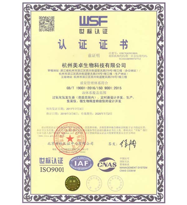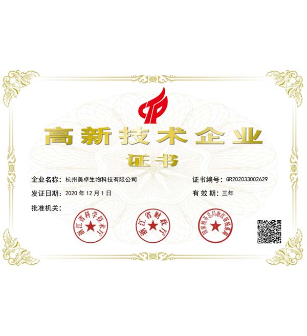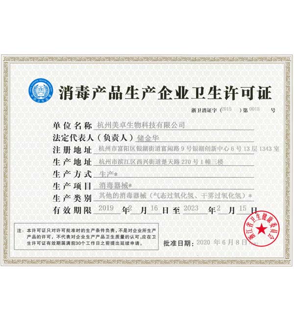 美卓生物凭借卓越的产品品质和先进的技术水平,荣获了众多荣誉和认证。公司持有消毒产品生产卫生许可证-浙卫消证字2015第0018号 。部分产品通过CE认证,标志着美卓生物的产品在国际市场上具备了较高的竞争力,为产品走向全球市场奠定了坚实基础。