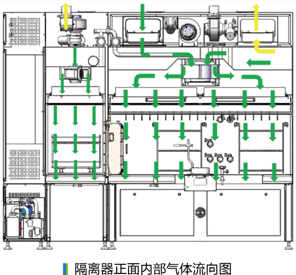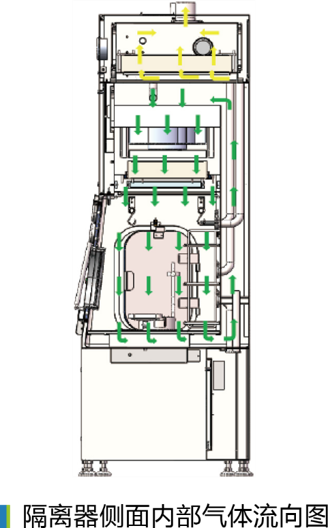 隔离器在工艺流程和外部环境之间提供了一道物理屏障。在标准隔离器通风条件下,入口空气穿过 HEPA(高效微粒空气过滤器)过滤器,进入操作室。出去的空气则穿过其他过滤器,进入通风管道。由于采用了这种通风方式,因此有两种方法可以将过氧化物导入操作室:一种是 "全腔注入 ",即 VHP 管道与通风系统相连;另一种是 "直接注入 ",即 VHP 管道直接与操作室相连。