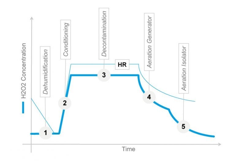 在这一阶段,隔离器内的过氧化物浓度达到确保 "杀灭 " 效果所需的浓度。